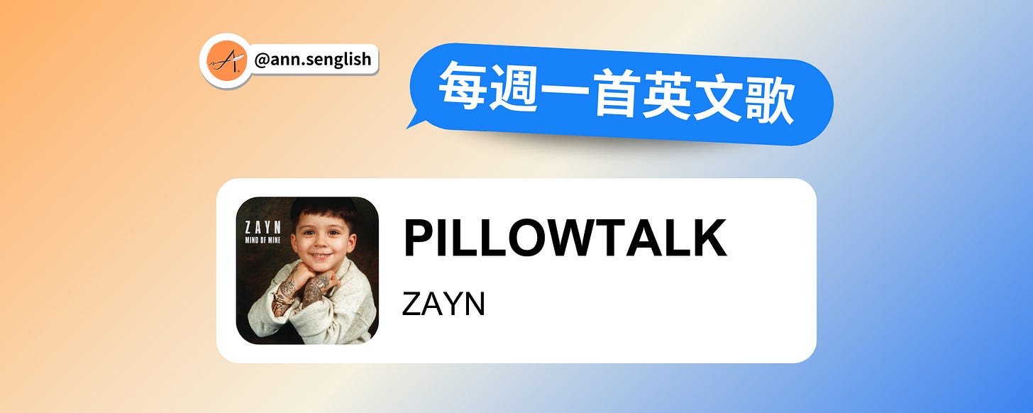 今天介紹的歌曲是來自 ZAYN 的- PILLOWTALK,被收錄於 Mind of Mine (2016) 的 Track 2。這首歌的歌名看起來像是什麼甜蜜的枕邊情話💞,讓人以為是一首浪漫情歌,但其實歌詞描述的完全不是這樣!🤯